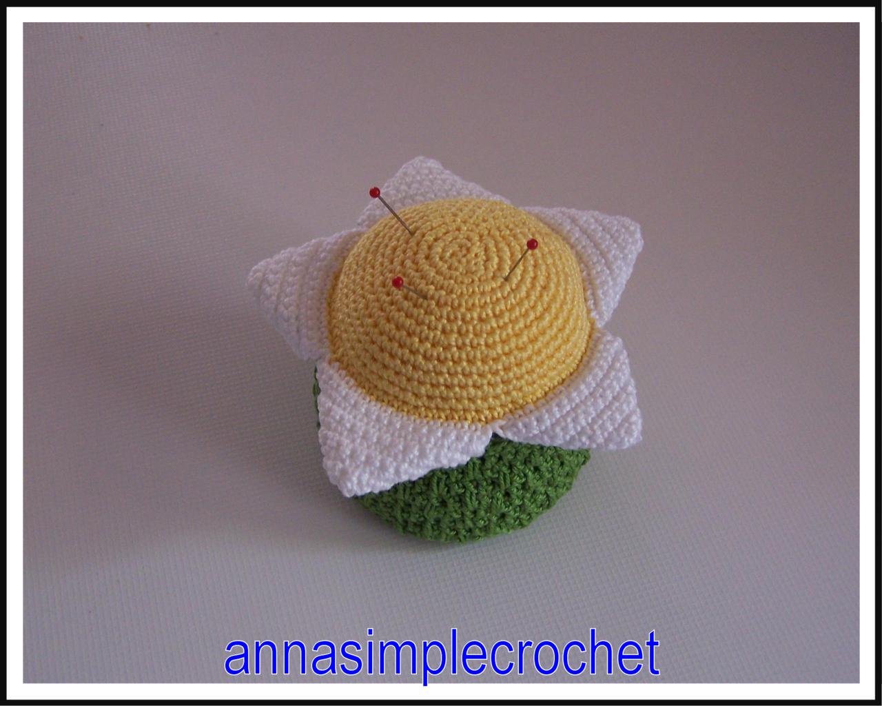 Une aiguille nº 1,50 ,du coton de couleur, de la ouate et voilà une petite ruche en crochet avec une petite abeille pour ce coussin à épingles.